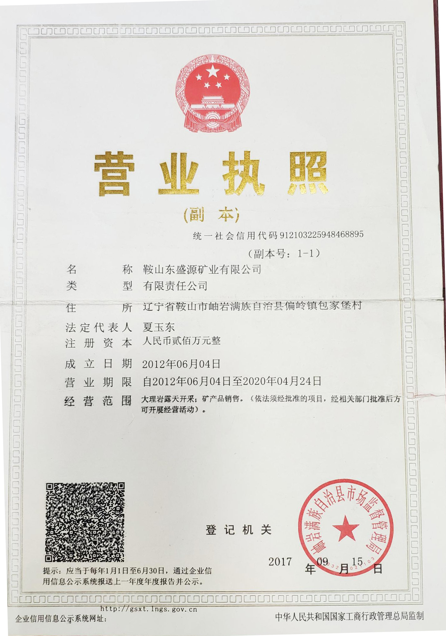 鞍山東盛源礦業(yè)有限公司主要生產(chǎn)經(jīng)營(yíng):
